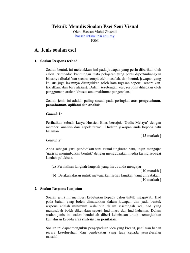 Teknik Menulis Soalan Esei Seni Visual Pdf