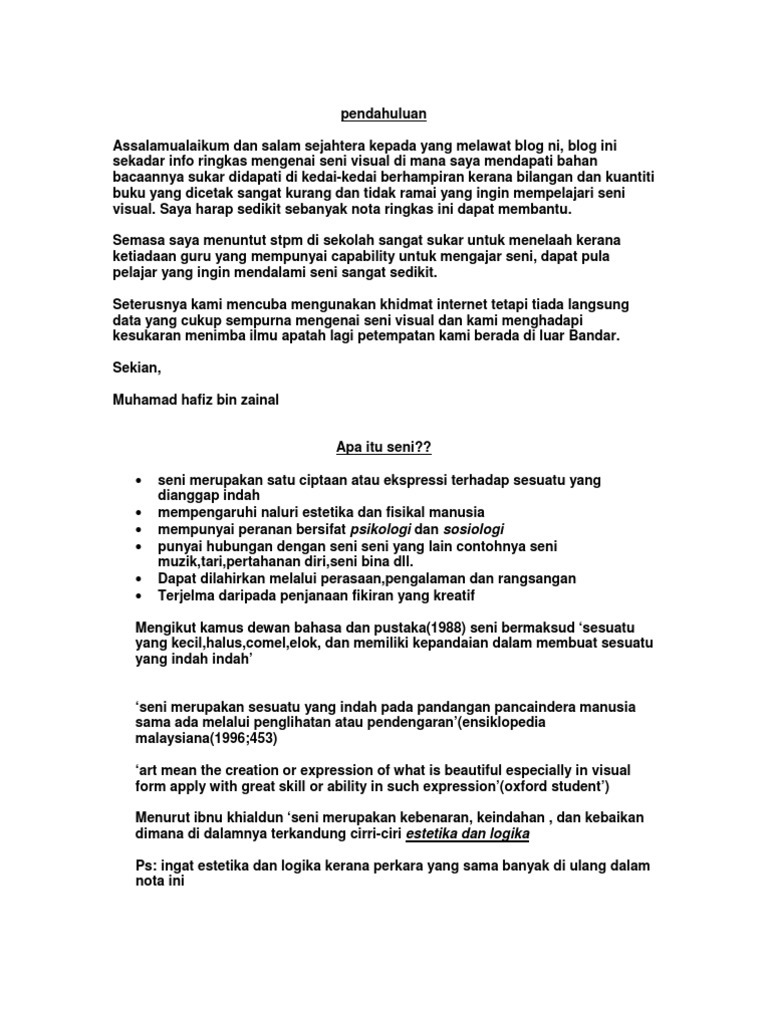 Nota SENI VISUAL STPM BAB 2. Format kertas soalan penggal 1 9701 markah kaedah Contoh soalan seni visual stpm penggal 1 cute766. Download View Nota Seni Visual Stpm as PDF for free.
